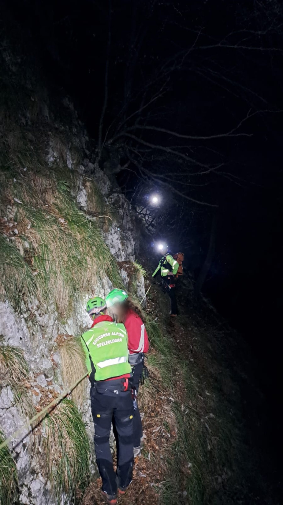 Una prima squadra veloce in poco meno di un’ora a piedi in salita ha raggiunto il ragazzo che si trovava più in basso. Con il supporto delle altre squadre arrivate di seguito – dieci volontari in tutto – arrampicando e attrezzando il percorso con corde fisse, i soccorritori sono saliti dai due escursionisti più alti. Li hanno dotati di casco e imbrago e li hanno calati fino alla base, per poi rientrare assieme al loro. Nel frattempo, per non destare preoccupazione, le loro famiglie erano state avvertite del ritardo dei figli e che il Soccorso alpino era con loro. Presenti anche i Vigili del fuoco. Le operazioni si sono concluse alle 20.