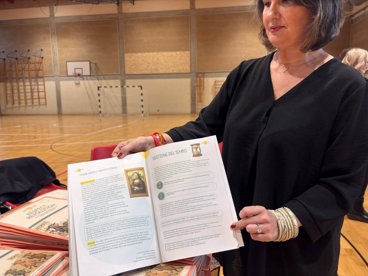 Saranno coinvolti gli studenti di prima e terza media, ma il testo è stato consegnato a tutti i giovanissimi che frequentano la ‘Alcide De Gasperi’ di Colceresa. Composto da 15 capitoli, propone un percorso di conoscenza a sé stessi, di un mondo fatto di rispetto e sani valori. Come la gratitudine e il perdono. Il tutto con esercizi paraci e riflessioni che supporteranno la costruzione di relazione più sane, andando così a creare un ambiente positivo, per valorizzare le differenze e risolvere i conflitti in modo costruttivo.