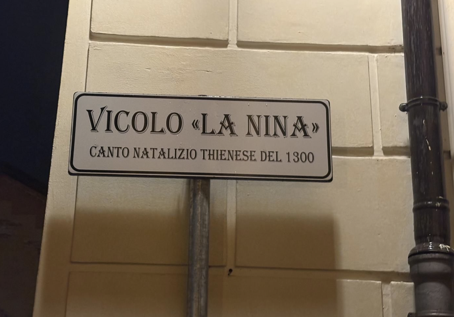 Neppure la fitta pioggia calata su Thiene, alla vigilia di Natale, ha fermato ‘la Nina’, la novena che in città viene cantata dal lontano 1300. Secoli di tradizione, portati avanti con passione e che anche quest’anno, grazie al sodalizio tra ProLoco e Ascom, non è mancata. Ma non solo. Alla storica canta è stato intitolato il vicolo che da piazza Nova porta in centro, costeggiando l’antica chiesa della Natività di Maria, meglio conosciuta dai thienesi come ‘cesetta rossa’.