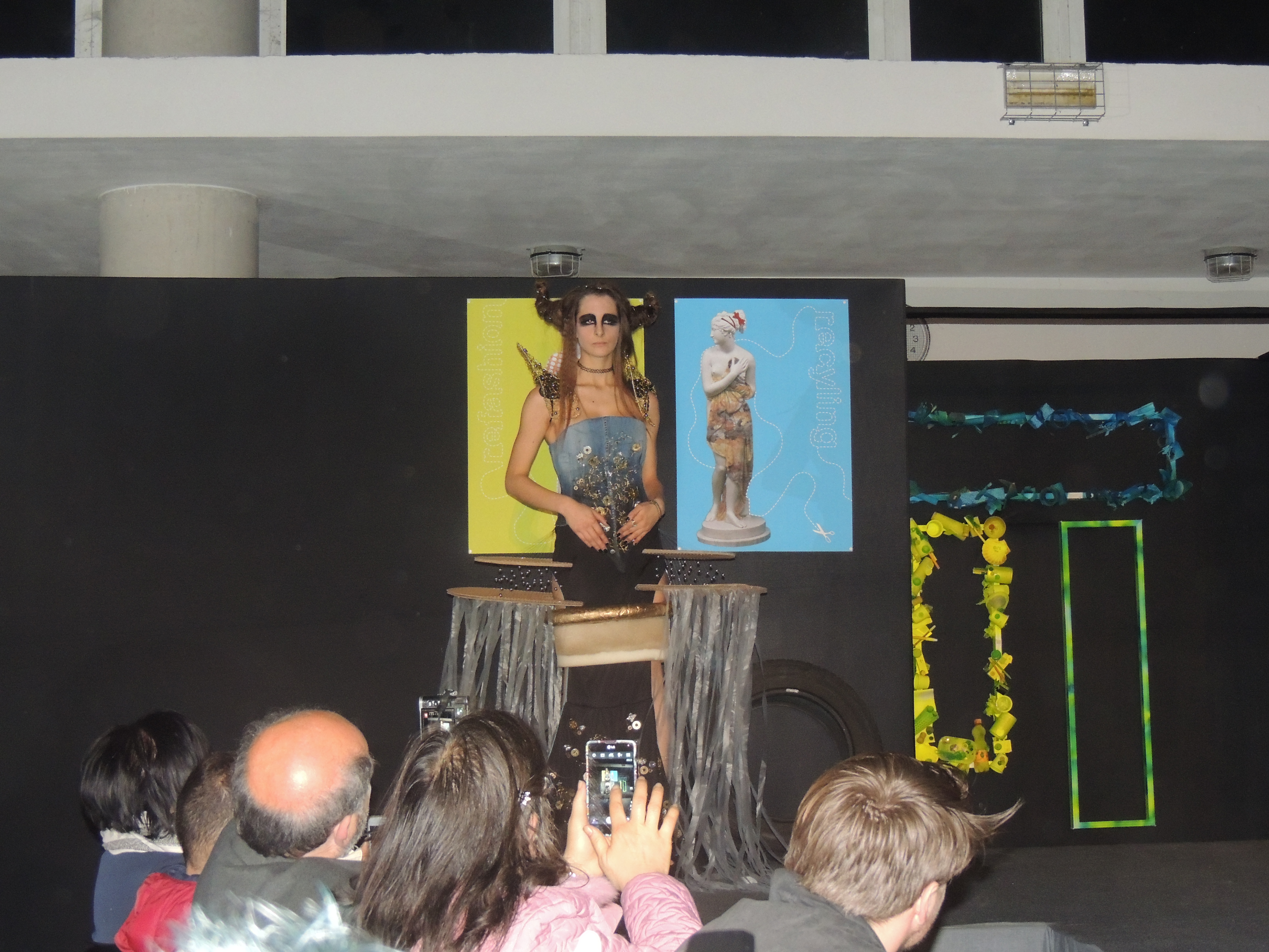 Quello che non traspare dalla leggiadria dei modelli, simili a fiori esotici con le loro variegatissime gonne, è proprio la fatica, che pure c’è stata , in un percorso partito lo scorso anno dalla ricerca personale di ogni alunno, che, affiancato dal docente, è approdato alla creazione di un bozzetto ideativo-creativo, fino alla fase pratica di realizzazione dei vestiti. Non si coglie il rammarico di della carenza di risorse: in una scuola che si prefigge di trovare il meglio in ogni alunno, esse “sono un mare che andrebbe riempito quotidianamente – commenta il dirigente. I tagli del personale stanno invece rendendo sempre più impegnativo dare a tutti, anche agli alunni disabili, un congruo spazio, non solo nei laboratori pratici del progetto “Cre Attiva Mente”, presente alla sfilata con l’albero della professoressa Gervasi , ma anche in un percorso equipollente che porti chi ne è in grado ad una vera e propria qualificazione professionale.