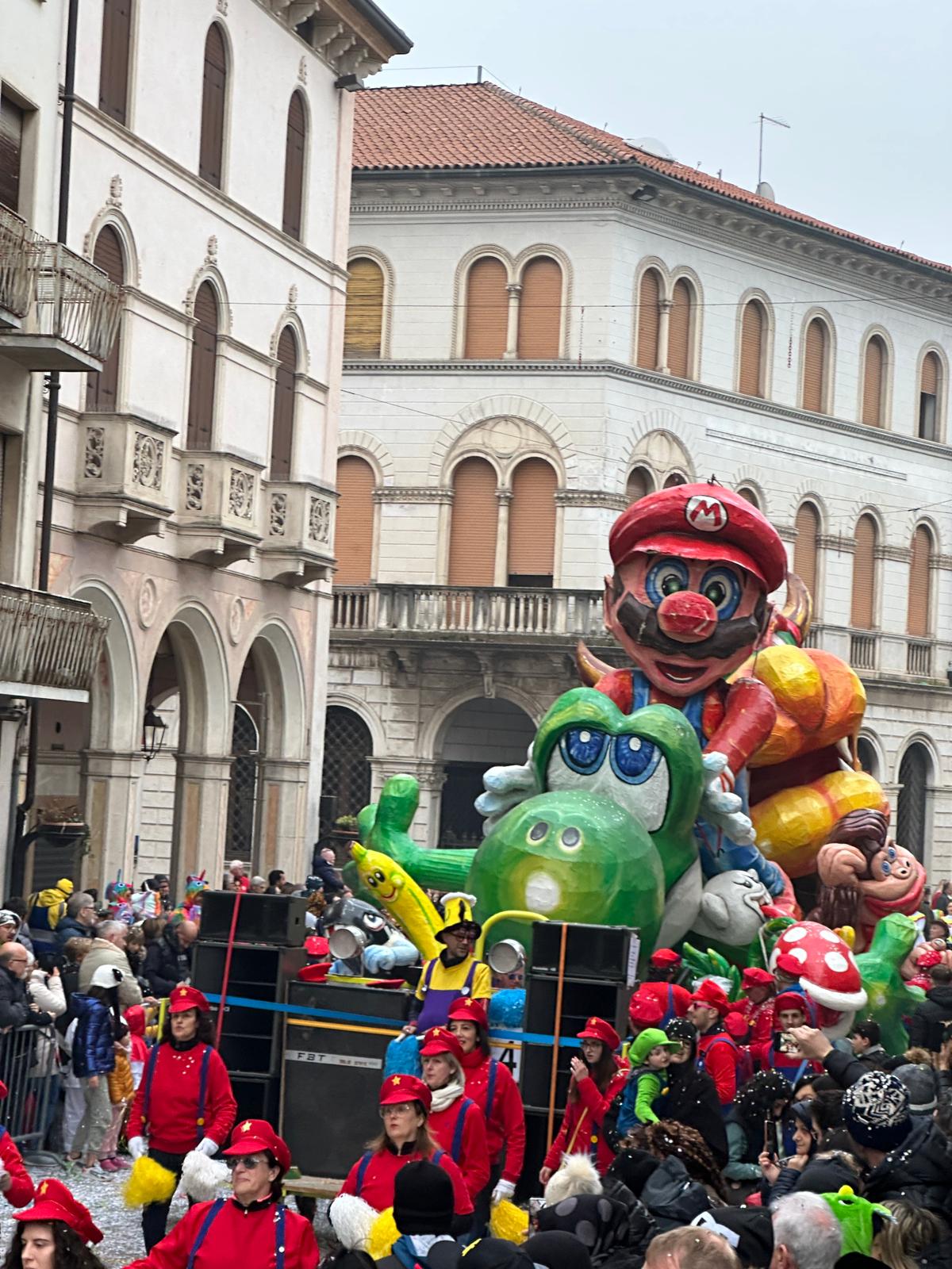 Grande sfilata pomeridiana con 7 carri allegorici, numerosi gruppi mascherati, majorettes e corpo bandistico. Il corteo animerà il percorso da piazza Ferrarin a piazza Scalcerle e viceversa, coinvolgendo famiglie e visitatori in un’atmosfera di festa diffusa.