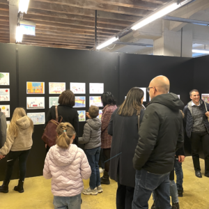 Mentre il pubblico ascoltava, lungo le pareti del Lanificio si snodava una mostra coloratissima: decine di disegni e pensieri che non sono entrati nel libro per motivi editoriali, ma che raccontano altrettante storie di empatia e immaginazione. A fine serata, tra sorrisi e curiosità, le famiglie hanno sfogliato le pagine del volume e ammirato gli elaborati esposti: un piccolo viaggio nella tenerezza e nella creatività dei più giovani.