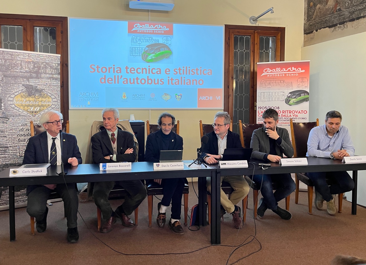 Sabato pomeriggio, nelle sale di Palazzo Toaldi Capra, si è svolta la conferenza “Storia tecnica e stilistica dell’autobus italiano”, che ha visto riuniti autorevoli esperti del settore. Il presidente dell’Historic Club Schio, Carlo Studlick, ha introdotto gli ospiti: Lorenzo Boscarelli, presidente dell’Associazione Italiana per la Storia dell’Automobile (AISA); Danilo Castellarin, presidente della Commissione Storia e Musei ASI; Alfonso Di Fonzo, presidente della Commissione Veicoli Utilitari e Ricreazionali ASI; e i giornalisti storici Massimo Condolo, Simone Schiavi e Danilo Senna.