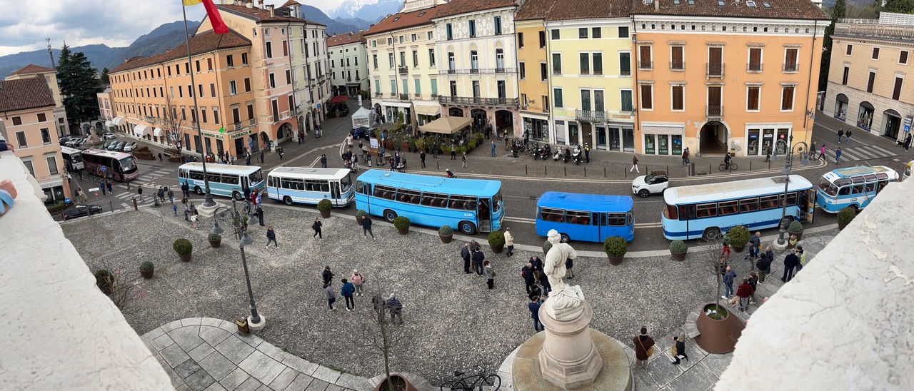 Dopo la rituale foto di gruppo, gli autobus hanno sfilato fino a via Battaglion Val Leogra e piazza Alessandro Rossi, dove sono stati esposti al pubblico. L’iniziativa ha attirato anche due folte delegazioni dell’associazione inBUSclub Emilia-Romagna e una del club di appassionati del Trentino, giunte per ammirare dal vivo i mezzi storici della Dalla Via, veri gioielli della tecnica italiana.