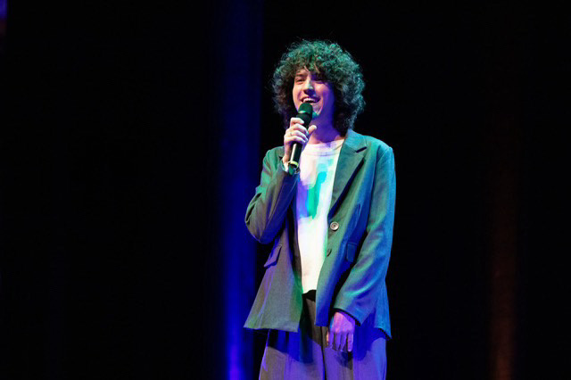 Lanaro ha portato sul palco due brani dal forte impatto emotivo: “La costruzione di un amore” di Ivano Fossati, interpretata con una delicatezza capace di avvolgere la sala in un silenzio rispettoso, e “Non Saremo Mai”, firmata da Madame, una delle voci più autorevoli del panorama musicale nazionale e orgoglio vicentino. Due scelte raffinate, restituite con una maturità sorprendente per un artista così giovane, che ha trasformato la sua performance in uno dei vertici emotivi della serata. Il programma ha visto alternarsi sul palco artisti che hanno contribuito, ciascuno con il proprio linguaggio, a costruire un mosaico armonico e sfaccettato. Marta Ferradini ha portato la sua interpretazione luminosa e precisa, mentre i Blonde Brothers hanno acceso il teatro con la loro energia pop-folk immediatamente riconoscibile. Davide Peron, con la sua scrittura cantautorale radicata nel territorio, ha aggiunto profondità narrativa, e Solomiia Sereda ha offerto una performance intensa e scenicamente potente. Corally, con la sua sensibilità vocale, ha completato il quadro con un timbro caldo e coinvolgente. Una coralità di voci che ha reso la serata un vero racconto condiviso, dove ogni artista ha portato un tassello essenziale.