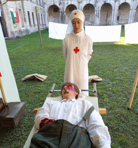 Ed è proprio questa scena, carica di emozione e rispetto reciproco tra avversari, che ha preso vita oggi all’interno della storica villa, trasformata per l’occasione in un ospedale militare del 1917. Le riprese hanno visto il coinvolgimento di numerosi rievocatori storici e interpreti, già protagonisti delle precedenti fasi del progetto, insieme a nuovi volti: Stella Dal Maso, nel ruolo dell’infermiera che affronta con fermezza l’insolenza di Baracca; Roberta Dal Prà Dall’Alba Marisa, come infermiera italiana e infermiera inglese; Federico Sperotto, giovane soldato morente; Roy Visonà, medico americano della Croce Rossa; Matteo Valentinotti, ufficiale dell’Ufficio Informazioni del Regio Esercito; e Giuseppe Avesani del gruppo BTG Bassano – 62ª Compagnia, nel ruolo dell’osservatore austriaco.