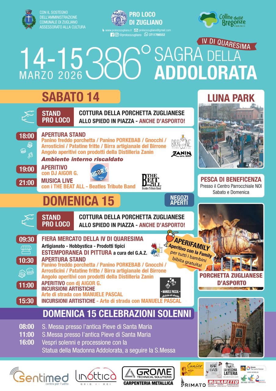 La 386ª Sagra dell’Addolorata si conferma così non solo come evento festoso, ma come vero e proprio simbolo di appartenenza per Zugliano: un invito a ritrovarsi, a celebrare insieme e a custodire una storia che attraversa i secoli.