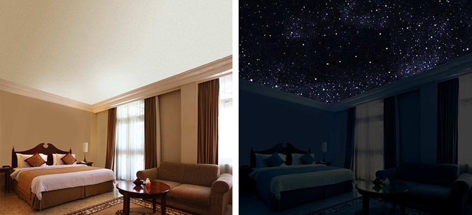 ‘Usiamo un prodotto brevettato, introvabile sul mercato, formulato in modo tale da brillare tutta la notte e praticamente invisibile di giorno – ha spiegato Ciro Mancino, l’imprenditore-padre dell’idea che è diventata business – un nostro artista verrà a casa tua e in un paio d’ore senza sporcare, piazzerà più di 2.000 stelle su qualunque tipo di soffitto. Il tutto sarà invisibile durante il giorno, quindi non sarà invadente sull’arredamento della stanza. Il soffitto – tiene a precisare Mancino – rimarrà uguale come lo è sempre stato, ma il manto stellato comparirà magicamente soltanto di notte. Solo quando spegnerai la luce avrai la piacevole illusione che il tuo soffitto sia scomparso e potrai ammirare come per magia, le costellazioni come l’orsa maggiore ed il piccolo carro nelle loro posizioni astronomicamente corrette. Inclusa anche la galassia della via lattea’. Vuoi avere maggiori informazioni ?