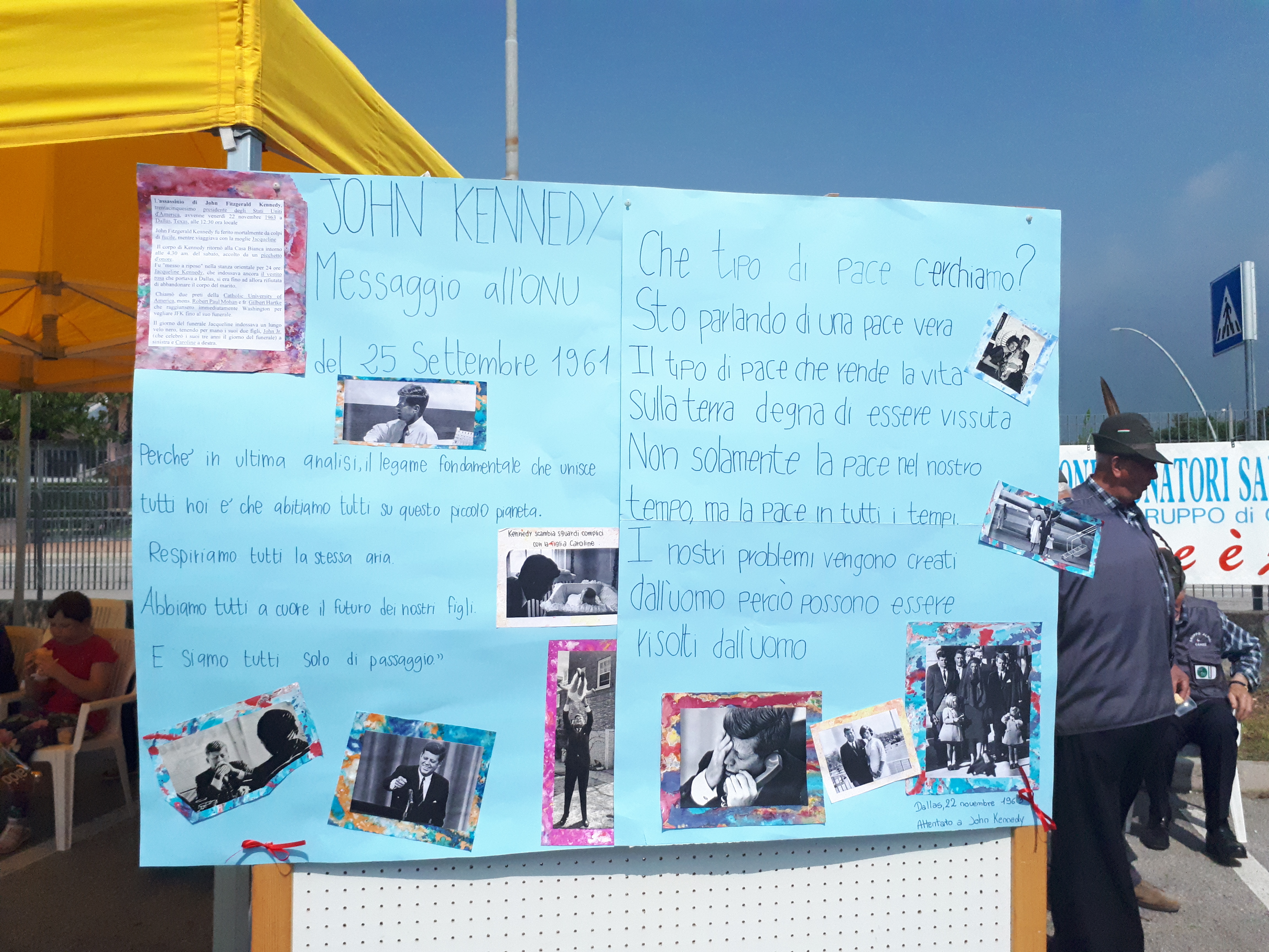 Studiato attentamente il celebre discorso all’Onu di Kennedy, gli studenti hanno sottolineato un passo che mai come ora è un monito per i potenti della terra : “L’umanità deve porre fine alla guerra, o la guerra porrà fine all’umanità. Dunque non concentriamoci solo sulle nostre differenze, ma pensiamo anche ai nostri interessi comuni e a come superare tali differenze. E se le nostre divergenze non possono essere risolte oggi, almeno possiamo cercare di rendere il mondo un luogo sicuro per le diversità. Perché, in fin dei conti, il nostro più elementare legame è che tutti noi abitiamo questo piccolo pianeta, respiriamo la stessa aria, ci preoccupiamo per il futuro dei nostri figli, e siamo tutti mortali”