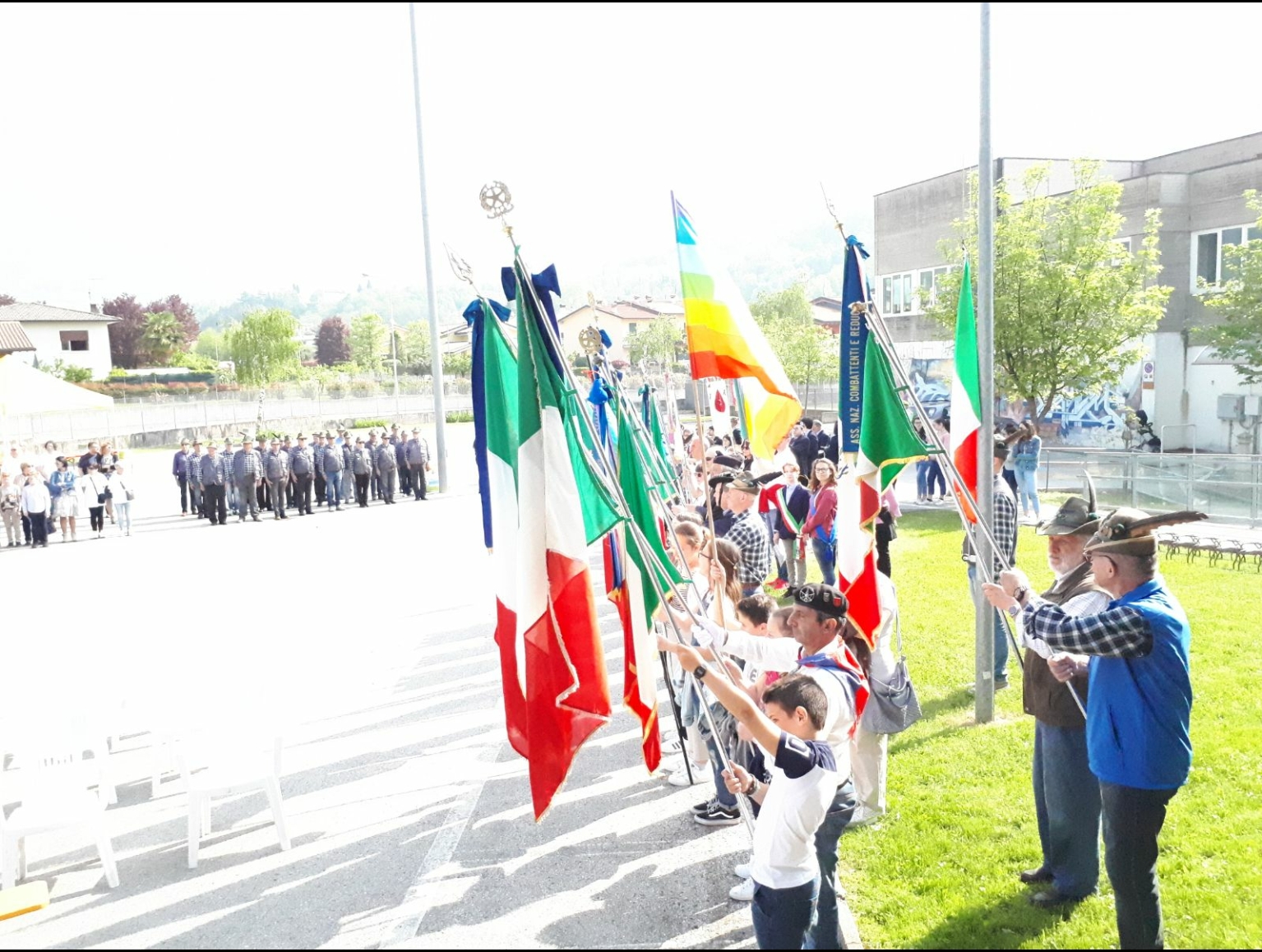 Sono intervenuti i sindaci dei due comuni, Davide Mattei e Giuseppe Panozzo, il luogotenente della caserma di Chiuppano Domenico Scalise, le bande cittadine, il gruppo Alpini e altre associazioni presenti sul territorio.