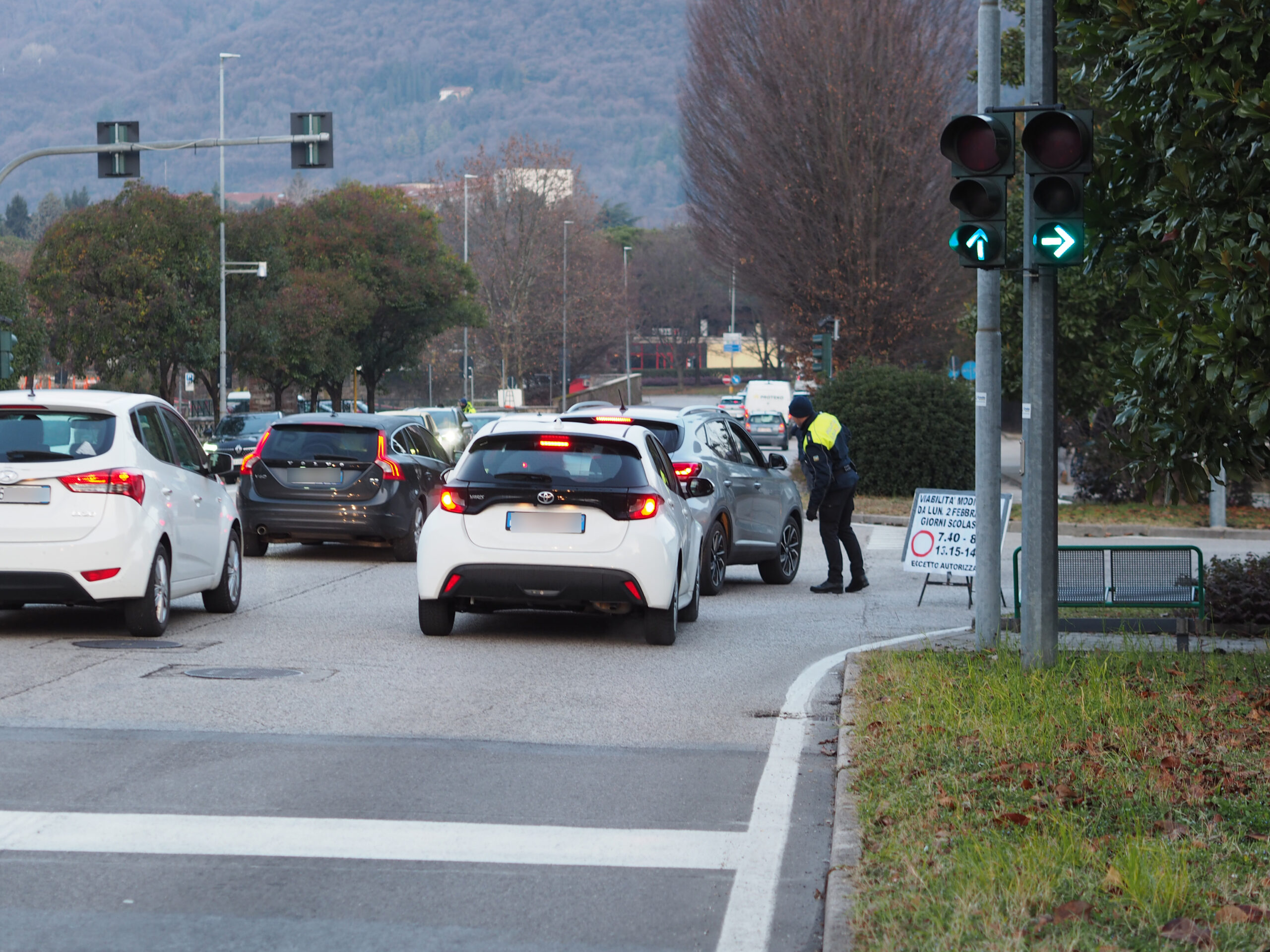 Tra gli studenti emerge soprattutto un dato inatteso: la riduzione del rumore. «Non sembrava neanche vero sentire silenzio nel centro studi» raccontano, sottolineando come la maggiore tranquillità abbia reso più semplice anche attraversare la strada durante la pausa pranzo. Riscontri positivi arrivano anche dai residenti, che segnalano un netto miglioramento dell’uscita al mattino, con tempi di attesa quasi azzerati, maggiore sicurezza sui marciapiedi e un generale aumento della percezione di tranquillità. «Ora mi sento più sereno anche a portare fuori il cane prima di andare al lavoro» racconta un residente, evidenziando come la sosta irregolare delle auto non sia più un problema. Dal mondo della scuola, dirigente scolastico e insegnanti confermano un clima di normalità: «Per noi tutto sereno, non abbiamo riscontrato alcuna criticità». Anzi, c’è chi sottolinea come «arrivare a scuola in bici ora sia davvero bellissimo», a conferma di un ambiente più accogliente anche per la mobilità attiva. A presidiare gli accessi e accompagnare la fase di avvio sono stati la Polizia Locale e i volontari, che parlano di una situazione “molto tranquilla, con utenti e cittadini generalmente soddisfatti della nuova organizzazione della viabilità”.