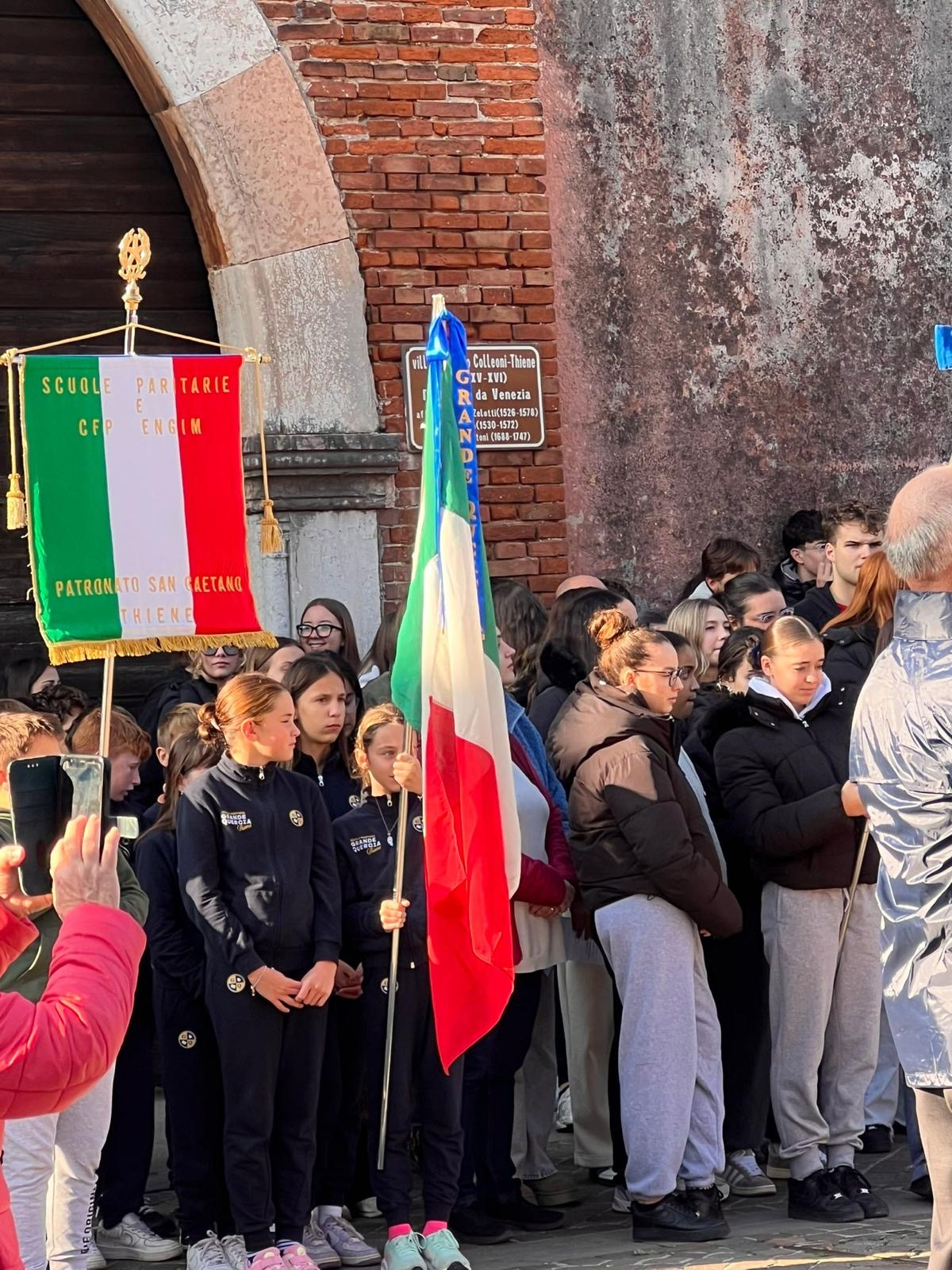 Alla cerimonia ha partecipato anche una delegazione di studenti della 3D, accompagnati dai professori Ornelio Bortoliero, Silvia Dalla Piana e dal dirigente scolastico professor Francesco Crivellaro, insieme agli alunni delle scuole del Comprensivo di Thiene, che hanno reso omaggio ai Caduti con grande compostezza e partecipazione.