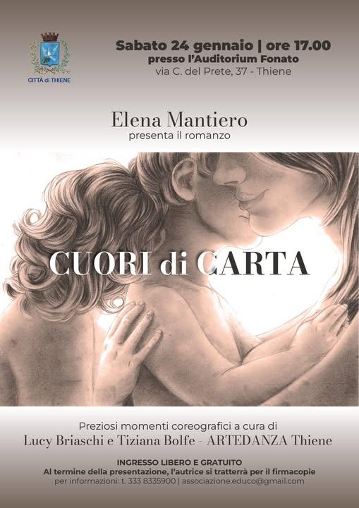 Che cosa resta di noi quando non ci saremo più? È una domanda che riguarda tutti, ma che per i genitori di una persona con disabilità assume un peso diverso, più urgente, spesso doloroso. È il tema del “dopo di noi”, una realtà che non concede scorciatoie emotive e che raramente viene affrontata con autenticità, senza retorica o pietismi. Elena Mantiero lo fa con coraggio, verità e realismo nel suo nuovo romanzo Cuori di carta, che verrà presentato sabato 24 gennaio alle 17, all’Auditorium Fonato di Thiene. L’ingresso è libero e gratuito; al termine l’autrice sarà disponibile per il firmacopie.