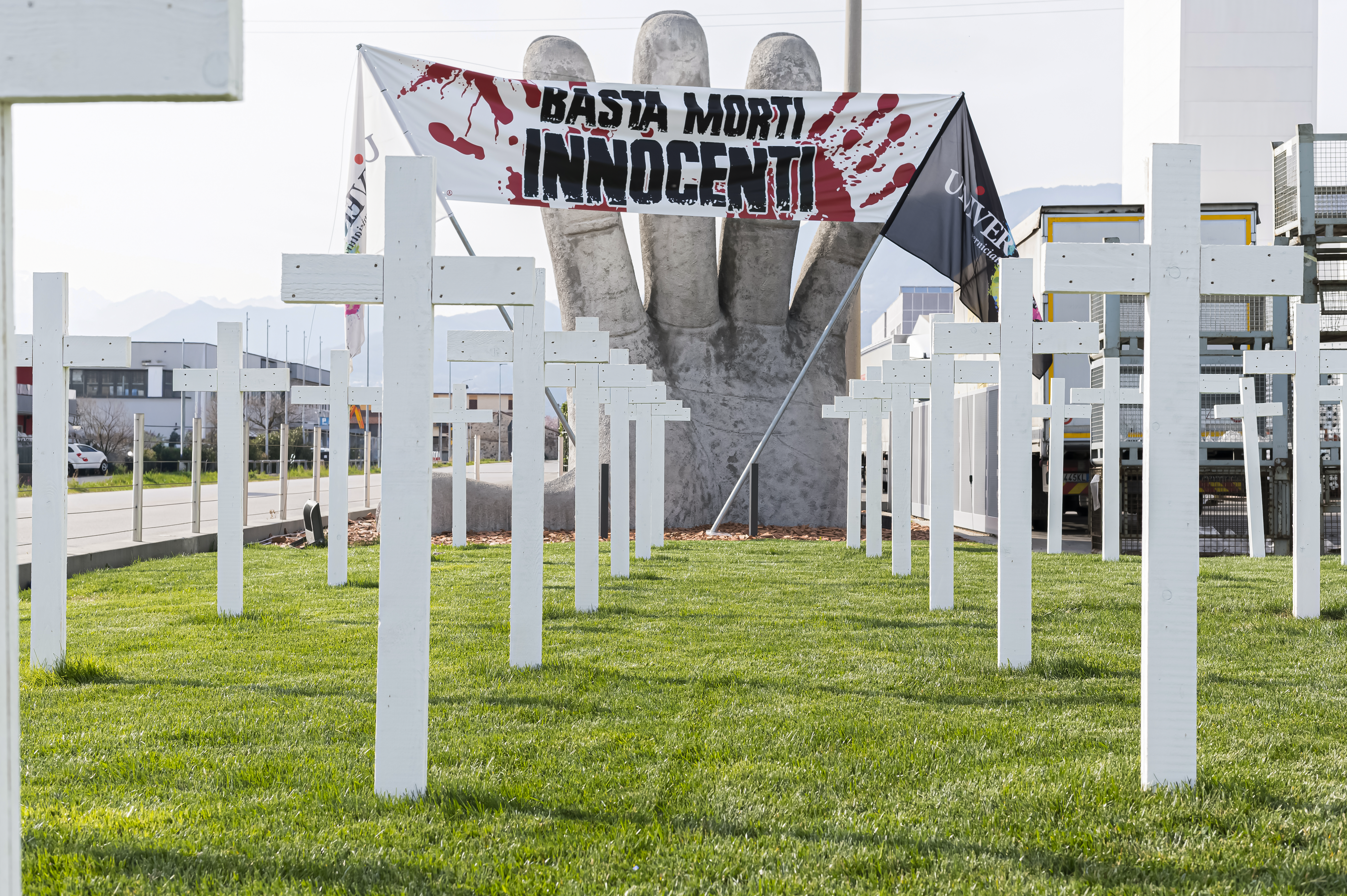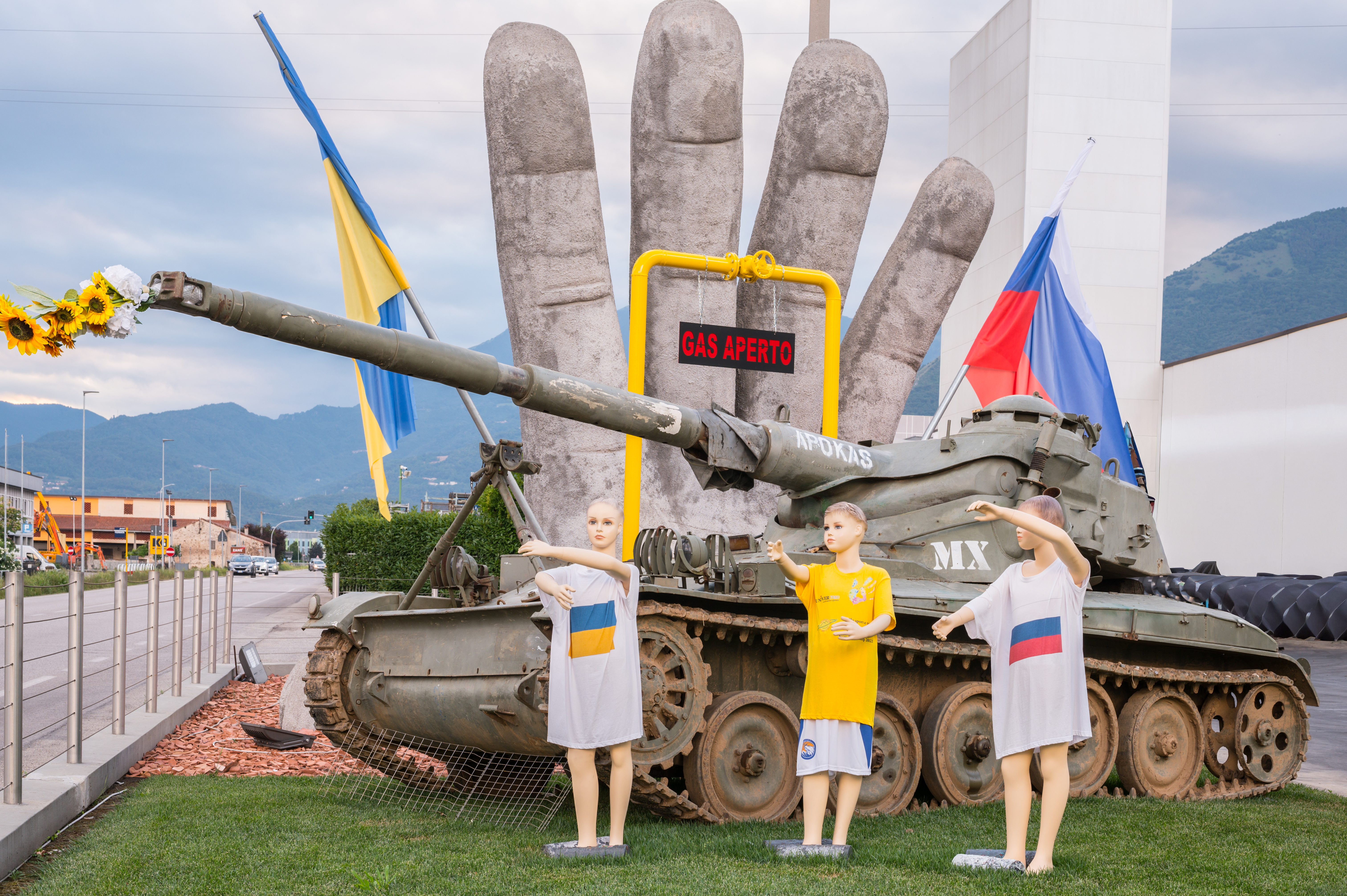 «Andare allo stadio significa stringere amicizie, fare gruppo e ritrovarsi abbracciati a colui che prima era un perfetto estraneo e magari diventerà un compagno con cui condividere la passione per la squadra del cuore. Vi posso assicurare che quello che avviene allo stadio, oltre allo spettacolo sportivo, è magico ed emozionante». Panozzo non è nuovo a queste opere d’arte, che nascono sempre da una sua idea. La sua fabbrica di verniciature e polveri ha avuto gli onori della cronaca nazionale quando fece piazzare un cannone che sparava fiori nel giardino d’ingresso dello stabile: era l’inizio della guerra in Ucraina e questo imprenditore, originario di Piovene Rocchette e residente a Thiene, non riuscì a rimanere indifferente a qualcosa di così grave che stava accadendo nel mondo.