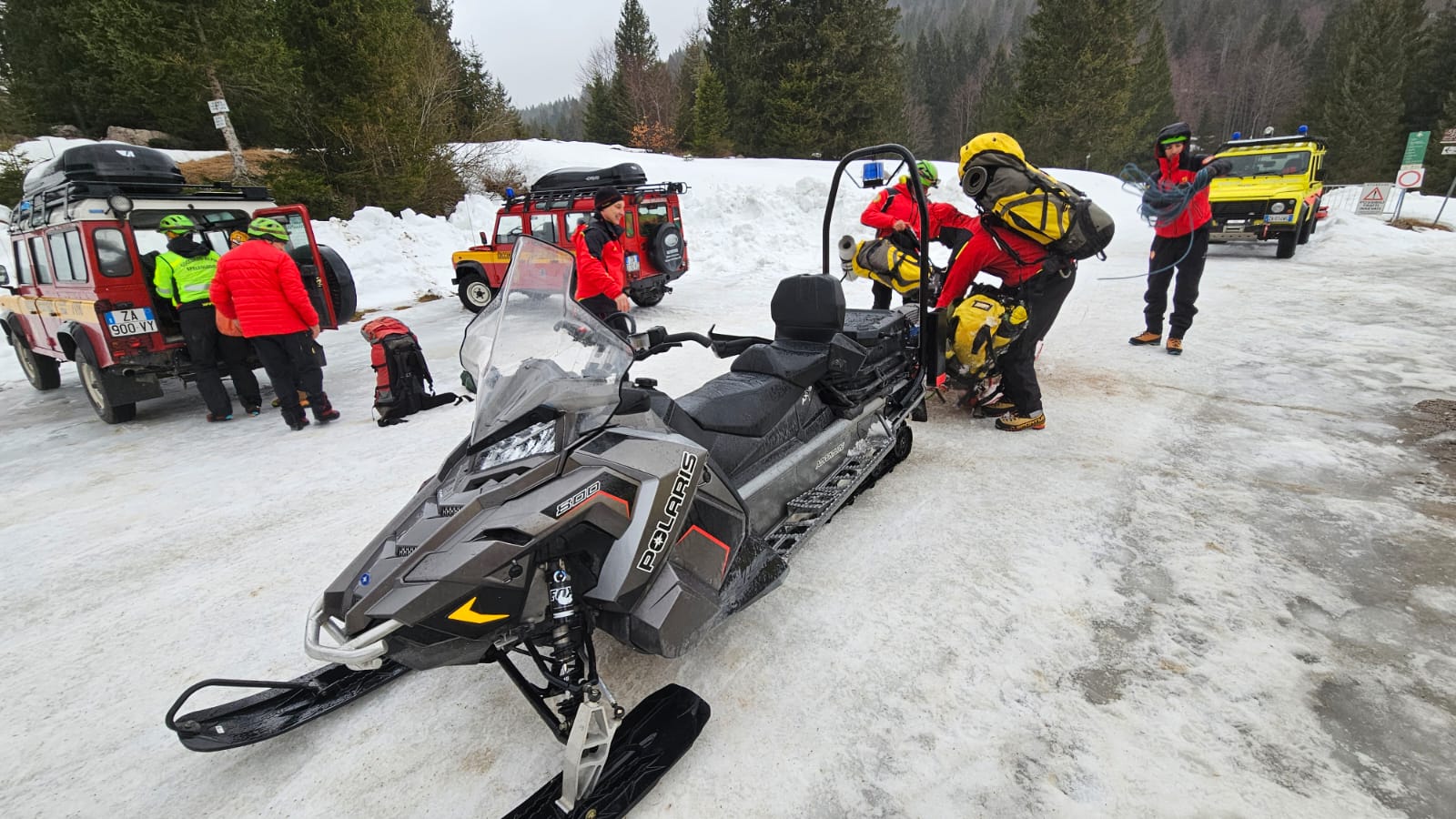 L’evento ha posto delle sfide tecniche e gestionali molto importanti: la cavità è situata in una zona remota dell’altopiano, difficile da raggiungere per le condizioni innevate del terreno. Si è reso necessario installare un campo base presso malga Fossetta, distante 30 minuti a piedi dalla grotta, che ha ospitato la direzione delle operazioni e le squadre di ricambio. Le difficoltà logistiche sono state affrontate con il supporto della Stazione alpina di Asiago, che grazie alle motoslitte ha curato il trasporto dei tecnici dal parcheggio di Campomulo fino a Malga Fossetta, lungo i 10 chilometri di traccia innevata, oltre all’abbondante materiale tecnico e logistico necessario.