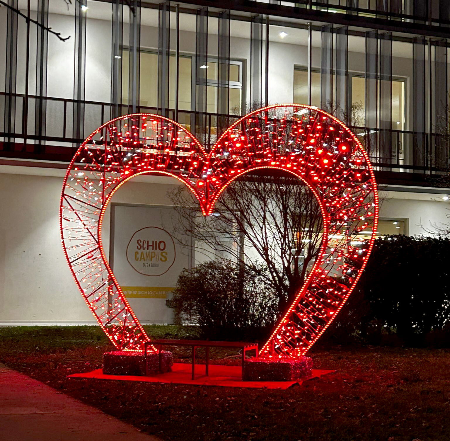 In vista di San Valentino, il Comune di Schio ripropone anche quest’anno il cuore luminoso gigante all’esterno del Faber Box, spazio di riferimento per le attività giovanili e per il campus scolastico cittadino. L’installazione è stata accesa a partire da ieri sera e resterà visibile per tutto il mese di febbraio.