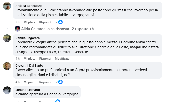 «L’Ufficio Postale di Zugliano – aggiunge l’Amministrazione – è un punto di riferimento fondamentale per la nostra comunità. Ci auguriamo che questo ulteriore rinvio sia l’ultimo e che i lavori possano concludersi davvero entro metà novembre».