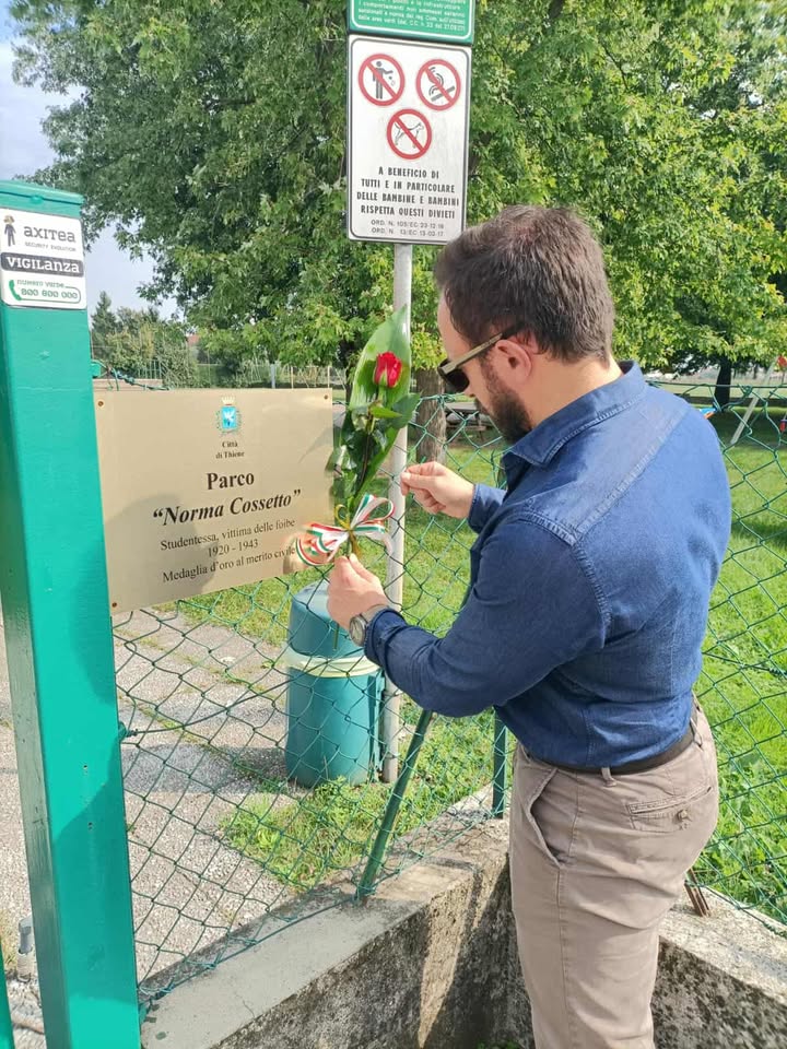 Nel pomeriggio di sabato  scorso, 4 ottobre 2025, nel parco Norma Cossetto di Thiene e nelle due panchine rosse simbolo della battaglia contro la violenza sulle donne , sia a Carrè che a Chiuppano alcuni militanti di Fratelli d’Italia e del comitato 10 febbraio promotore della manifestazione, hanno deposto una rosa in ricordo a Norma Cossetto brutalmente seviziata , violentata e gettata ancora viva in una foiba dai partigiani comunisti di Tito.
