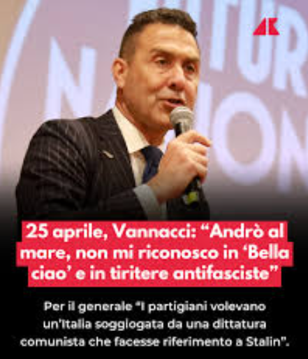Quest’anno a riaccendere la discussione è stato Roberto Vannacci, leader di Futuro Nazionale. «Il 25 aprile io festeggio San Marco», ha dichiarato, richiamandosi al patrono di Venezia. «Quando la Liberazione diventerà una festa unitaria, che unisce tutti gli italiani, scenderemo in piazza tutti quanti», ha aggiunto. In un’intervista all’Adnkronos ha poi ribadito l’idea di una “riconciliazione” che onori «tutti i caduti, al di là delle divise», confermando che non avrebbe celebrato il 25 aprile.