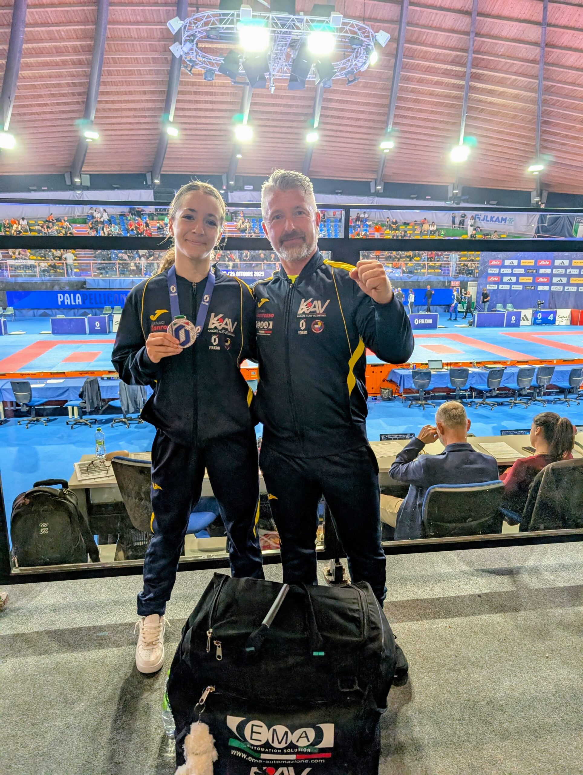Andrea non si è però lasciata scoraggiare: nella finale per il bronzo, opposta a Giulia Petrin del Karate Valdobbiadene, ha disputato un incontro impeccabile, imponendosi con determinazione e salendo sul podio con una splendida medaglia di bronzo.