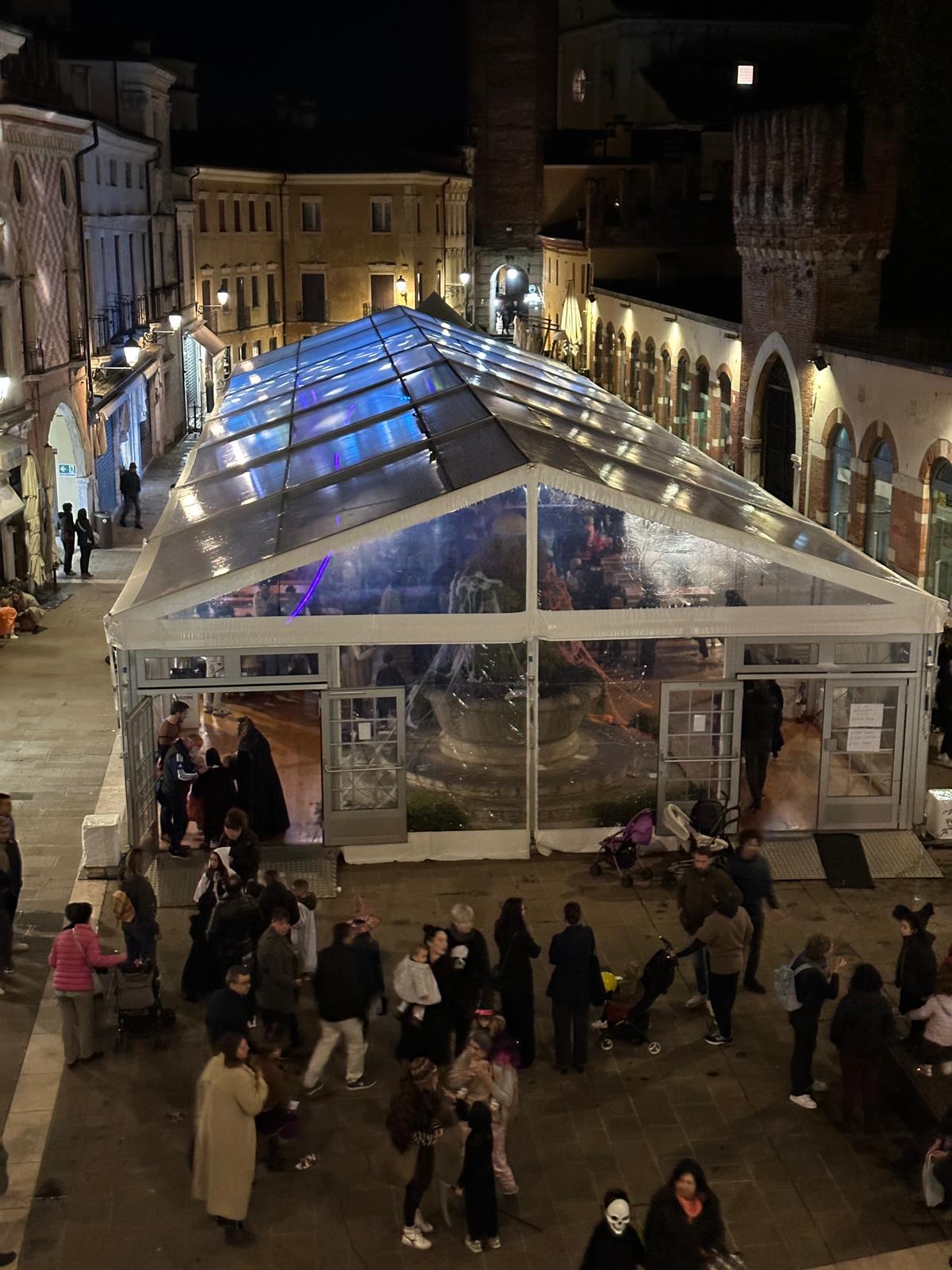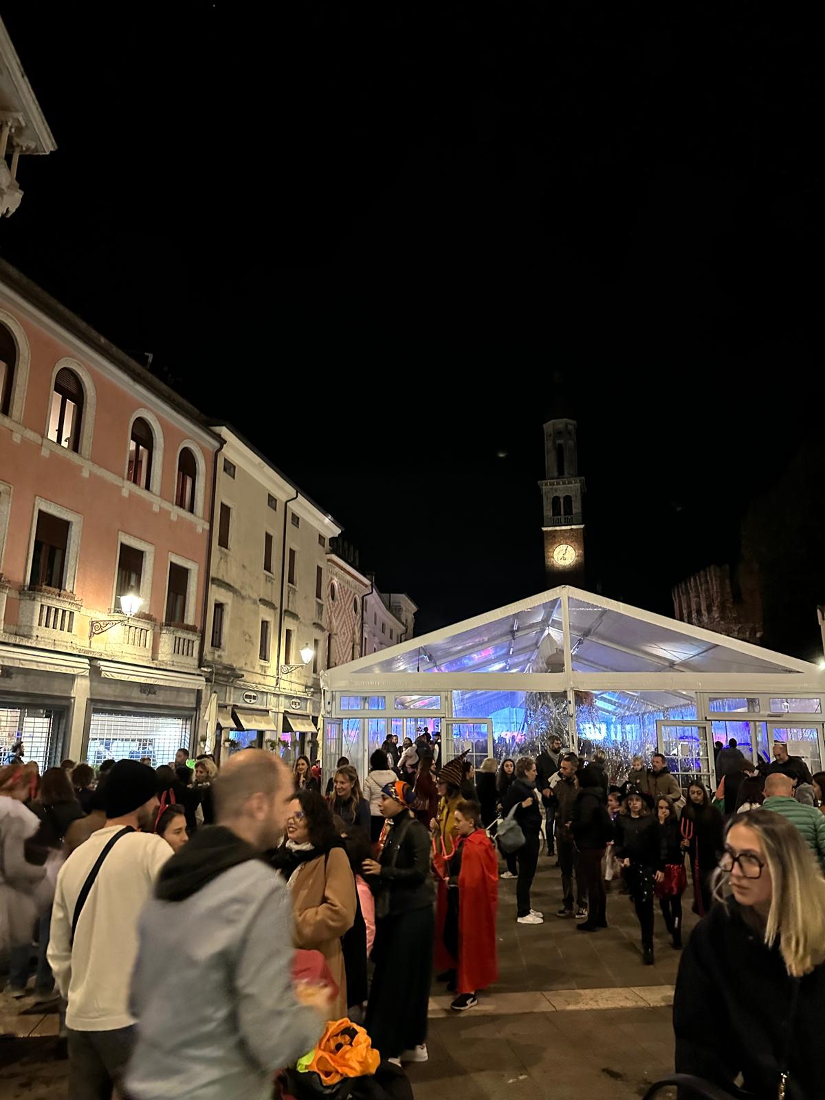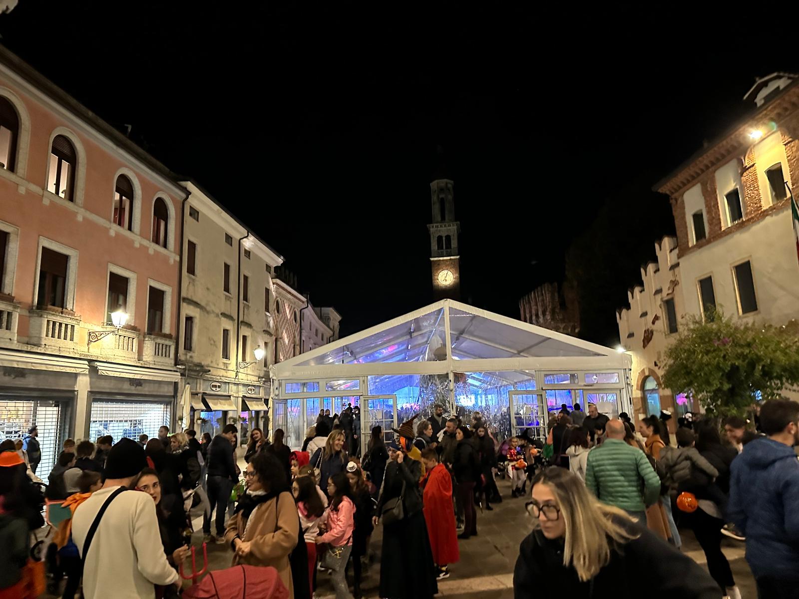 dell’evento. Stessa sorte per i 300 omaggi distribuiti da Pro Loco, terminati subito all’interno della tensostruttura. Perfino la dimenticata galleria è stata meta dei piccoli mostri che sono riusciti a ravvivarla con la loro massiva presenza, tra risate e cantilene seguendo la scia di ‘dolcetto o scherzetto’. “E’ stata una grandissima serata di Halloween – ha raccontato Manuel Benetti tirando le somme – molti bambini si sono divertiti. Animazione molto competente e divertente. Tre ore di intrattenimento che è volato. Ringraziamo in primis tutti i volontari per queste tre settimane dove, con fatica, dedizione e amore per la propria città, ci hanno permesso di realizzare tutto questo. Ringrazio il Comune e l’assessore Marina Maino per l’appoggio. Grazie ad Ascom e tutti coloro che sono venuti a trovarci in questi giorni di eventi marchiati Pro Loco per Thiene. Ci siamo impegnati molto, fino alle 00.30 eravamo in piazza a smantellare in vista della mattina seguente, momento previsto per lo smontaggio. Stanchi ma davvero soddisfatti. Ci vediamo il 16-17 e 23-24 dicembre per il Natale, la Nina dei giovani e il gigante per la vigilia.”.